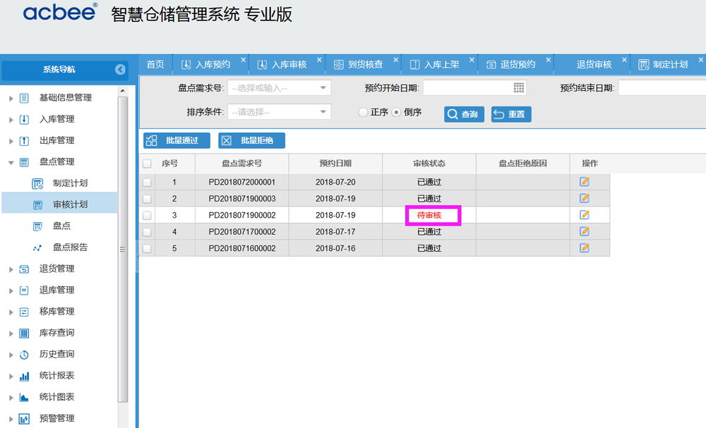 盘点预约状态为未审核时可以删除